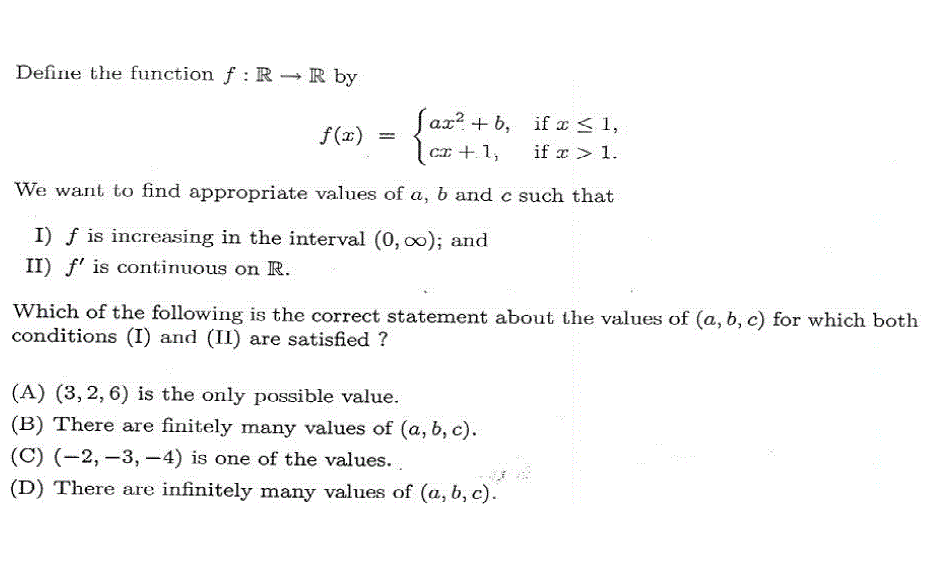 multiple choice question related real valued function