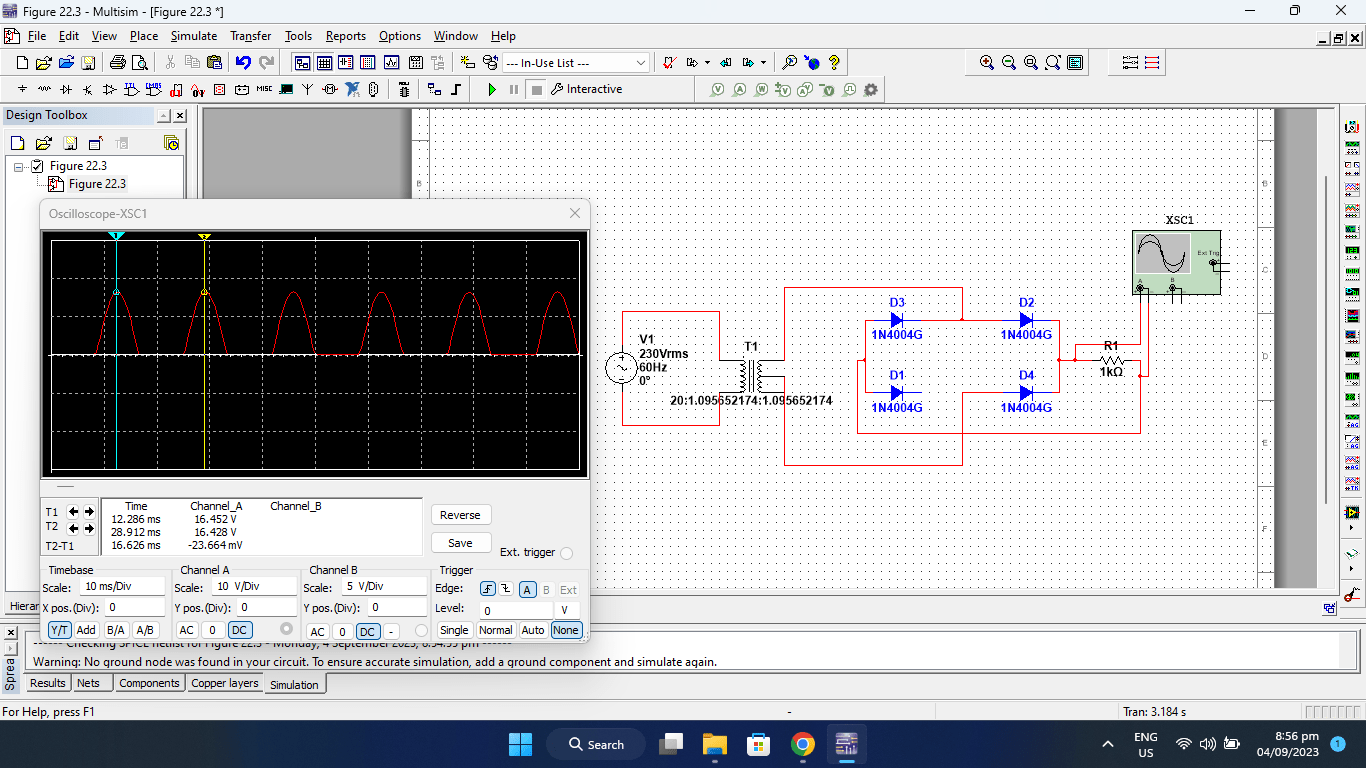 full wave bridge rectifier circuit multisim simulation