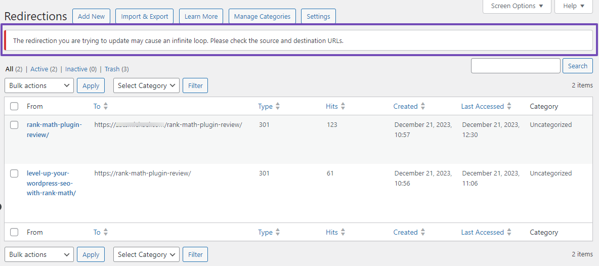 Berbagai Contoh Redirect Loop Errors 100