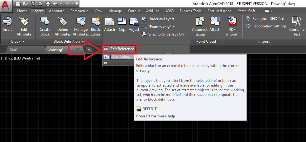 refedit display editing autocad drafting object