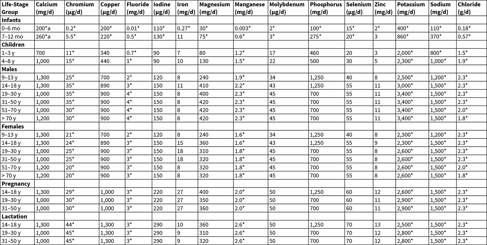recommended dietary intake adequate intake micronutrients age