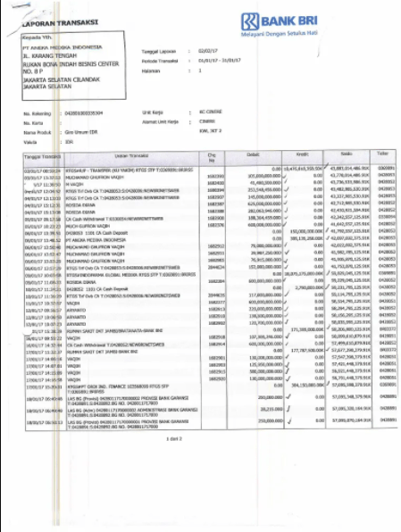 Berbagai Contoh Rekening Koran Bank