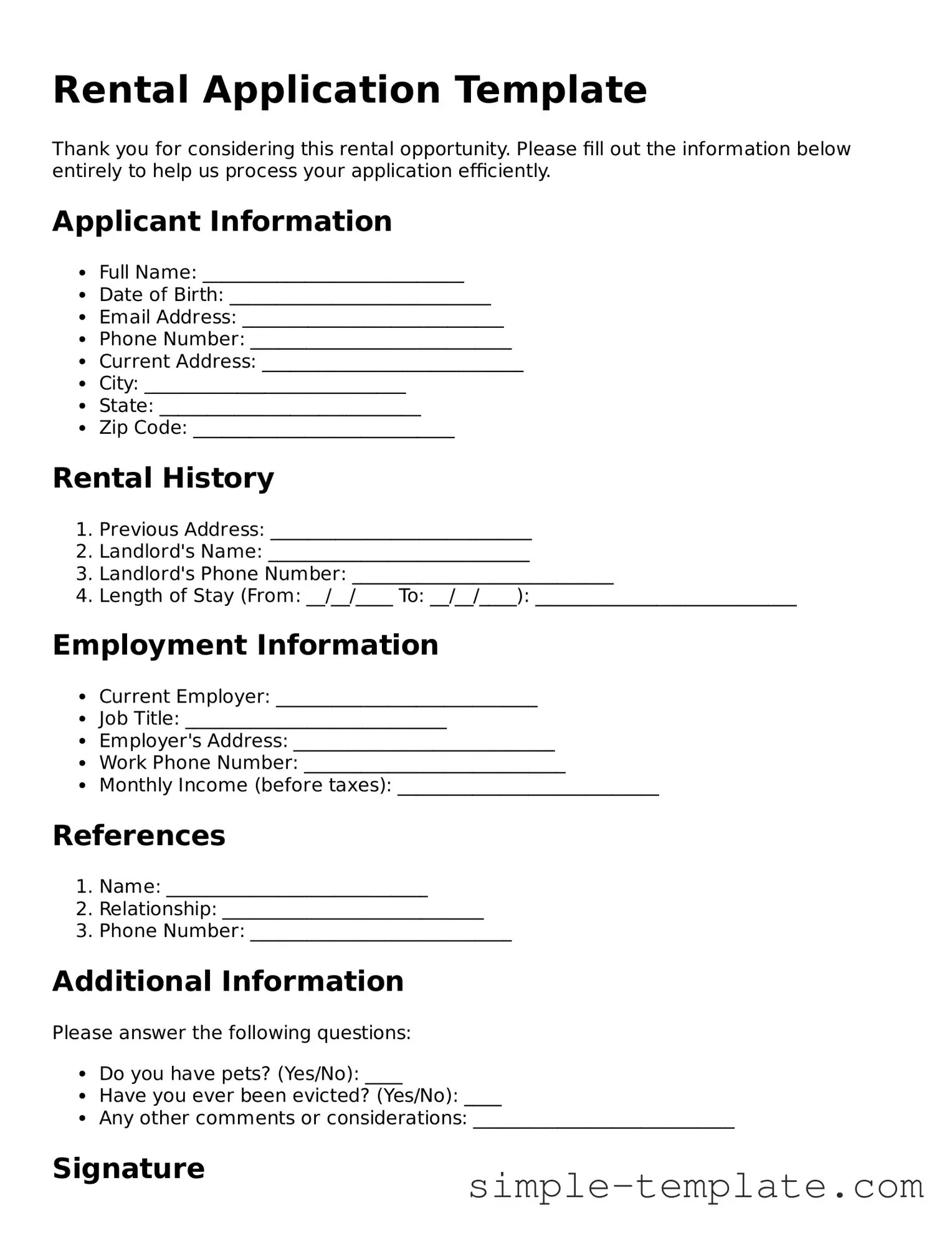 printable rental application printable templates