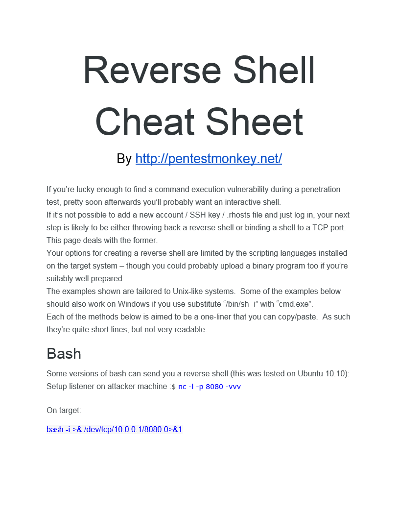 Berbagai Contoh Reverse Shell Piping