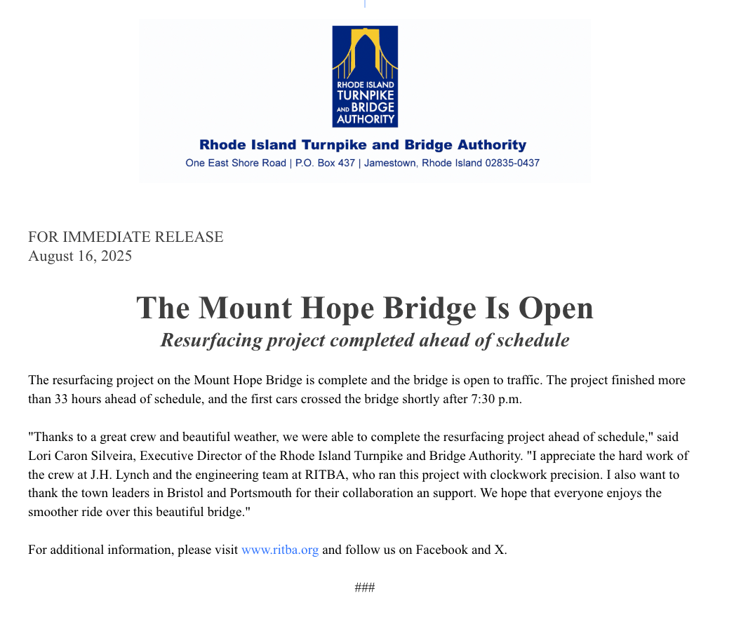 travel alerts rhode island turnpike bridge authority