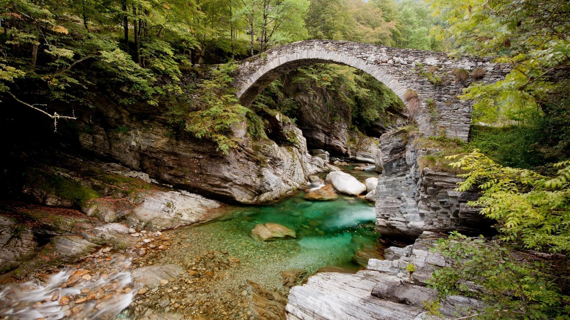 wallpaper bridge wooden river trees nature hd picture image