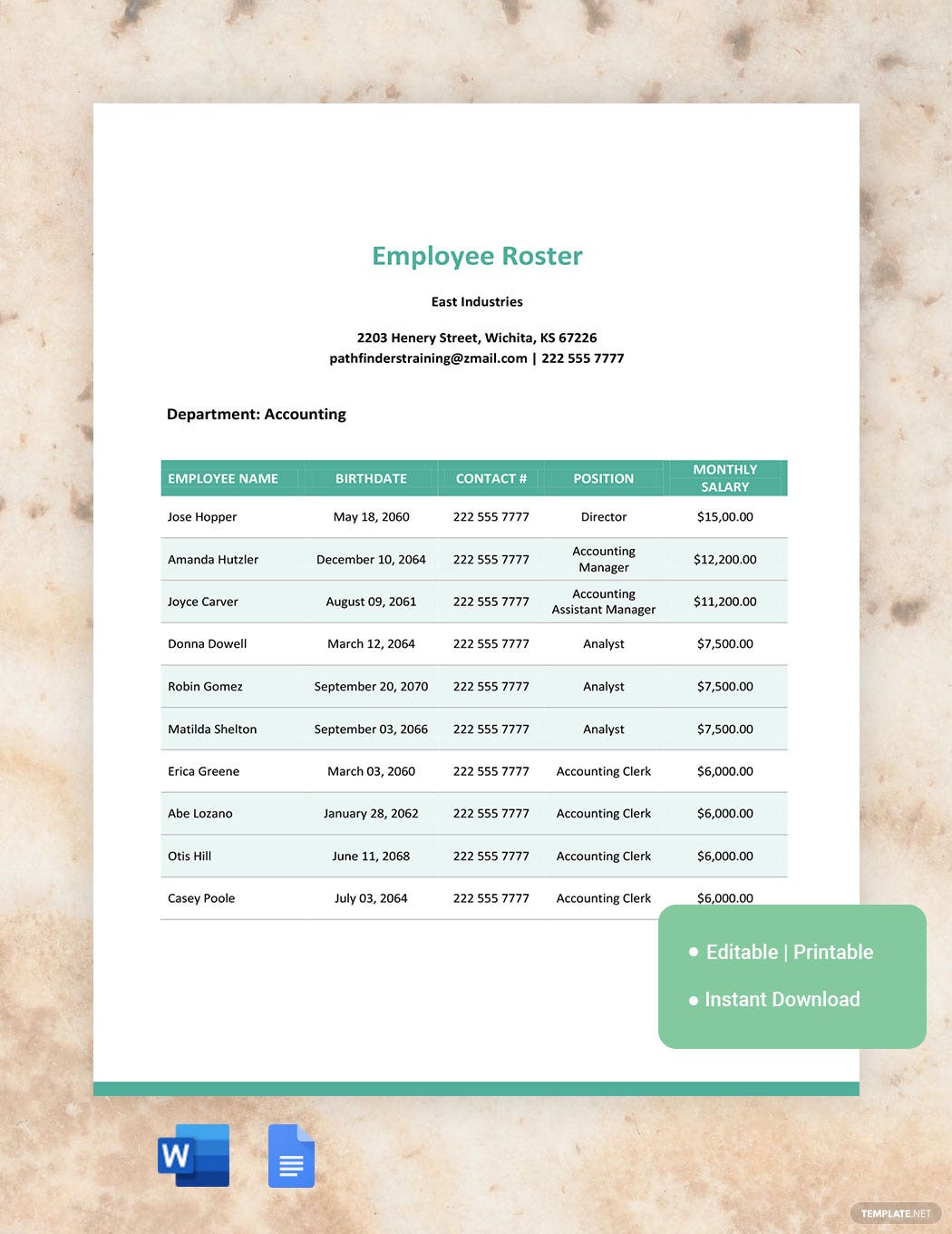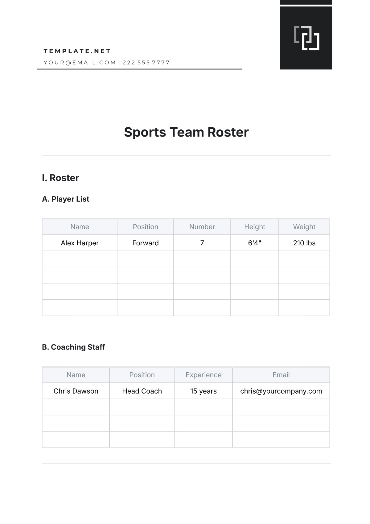 Berbagai Contoh Roster