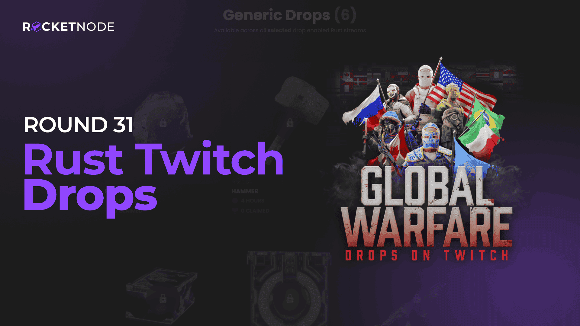 Tidak hanya Rust Twitch Drops, anda juga bisa melihat gambar lain seperti Round 1, Round 30, Round 2, Round 3, Home-Brewed 2, Garage Door Skins, Bolt Action Rifle, Round 31, All AK, Round 26, 10th Anniversary, 28 29 30, Rustoria AK, Disguised Toast, Bellium, Round 17, Round 16, Zchum Locker, Round 9, Round 7, Dust, Round 14, Round 24, and Ruso AK.