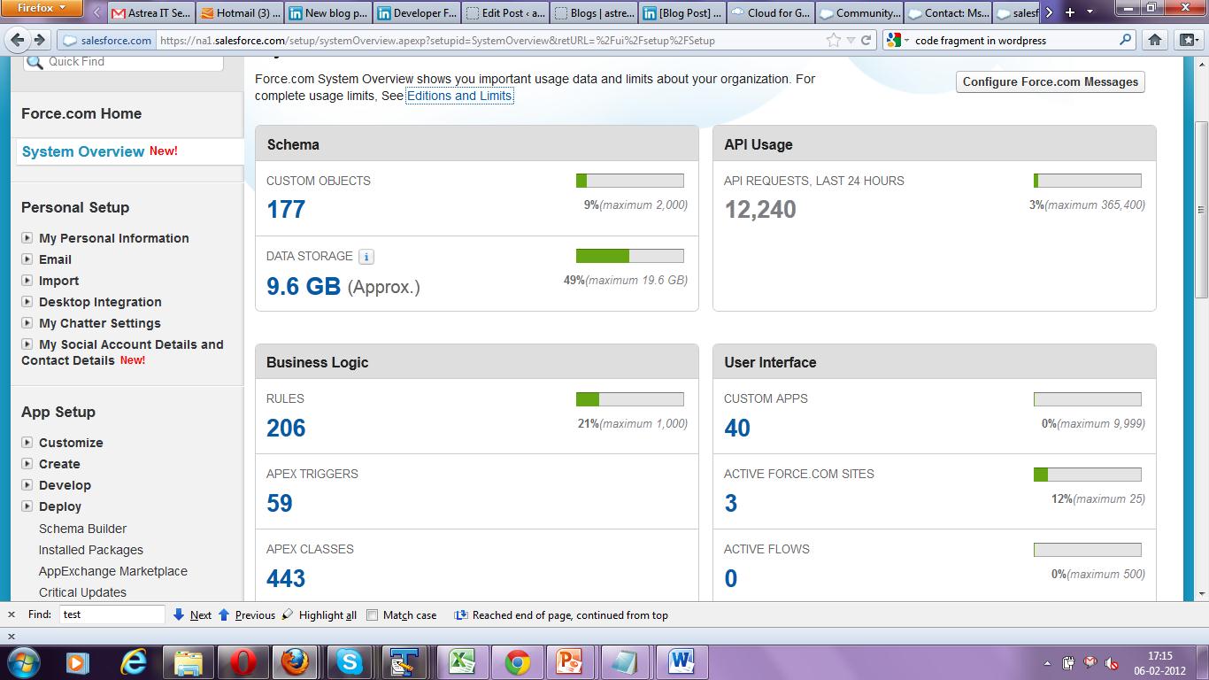 system overview quick glance salesforce resource usage