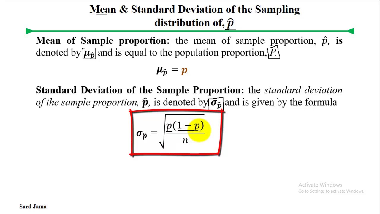 sampling distribution sample proportion part statstics