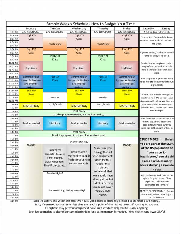 Berbagai Contoh Sample Study Schedule