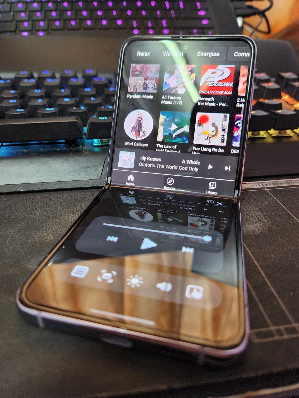 hands samsung flex gaming handheld console flip