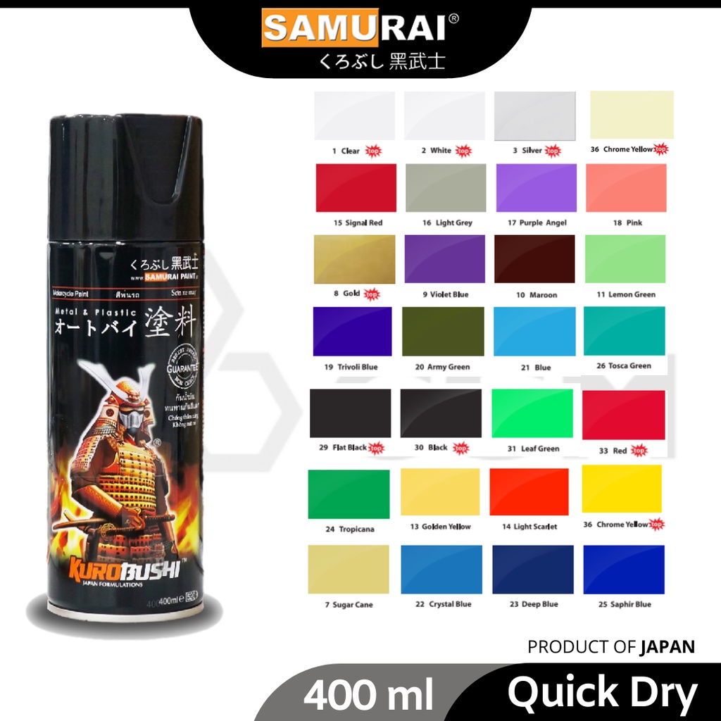 ready stock murah samurai paint standard colour aerosol spray