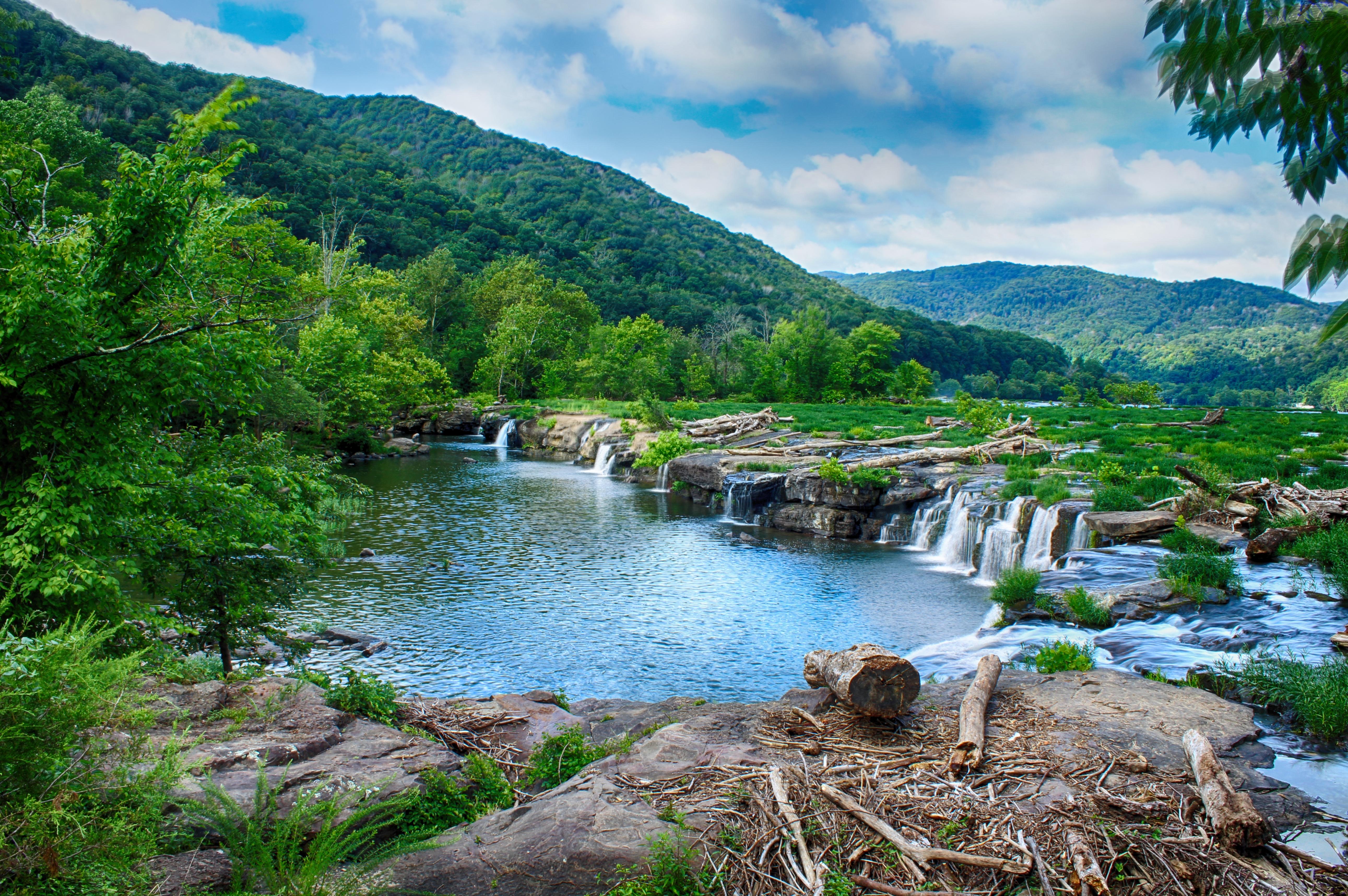 river flowing section sandstone falls west virginia
