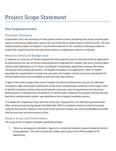 Berbagai Contoh Scope Statement