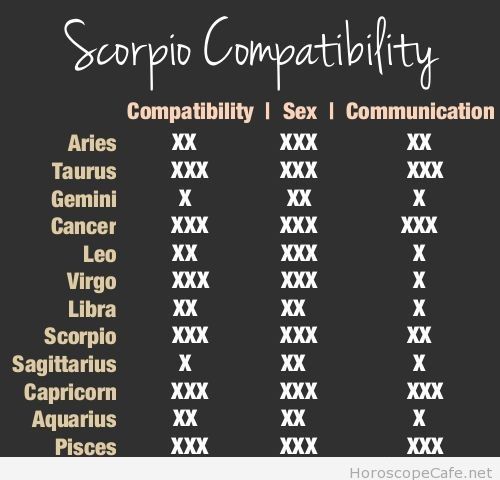 scorpio compatibility worst matches chart percentages