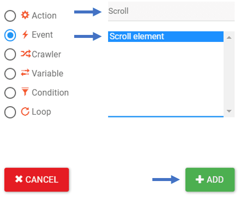 scroll element command rtila web business automation