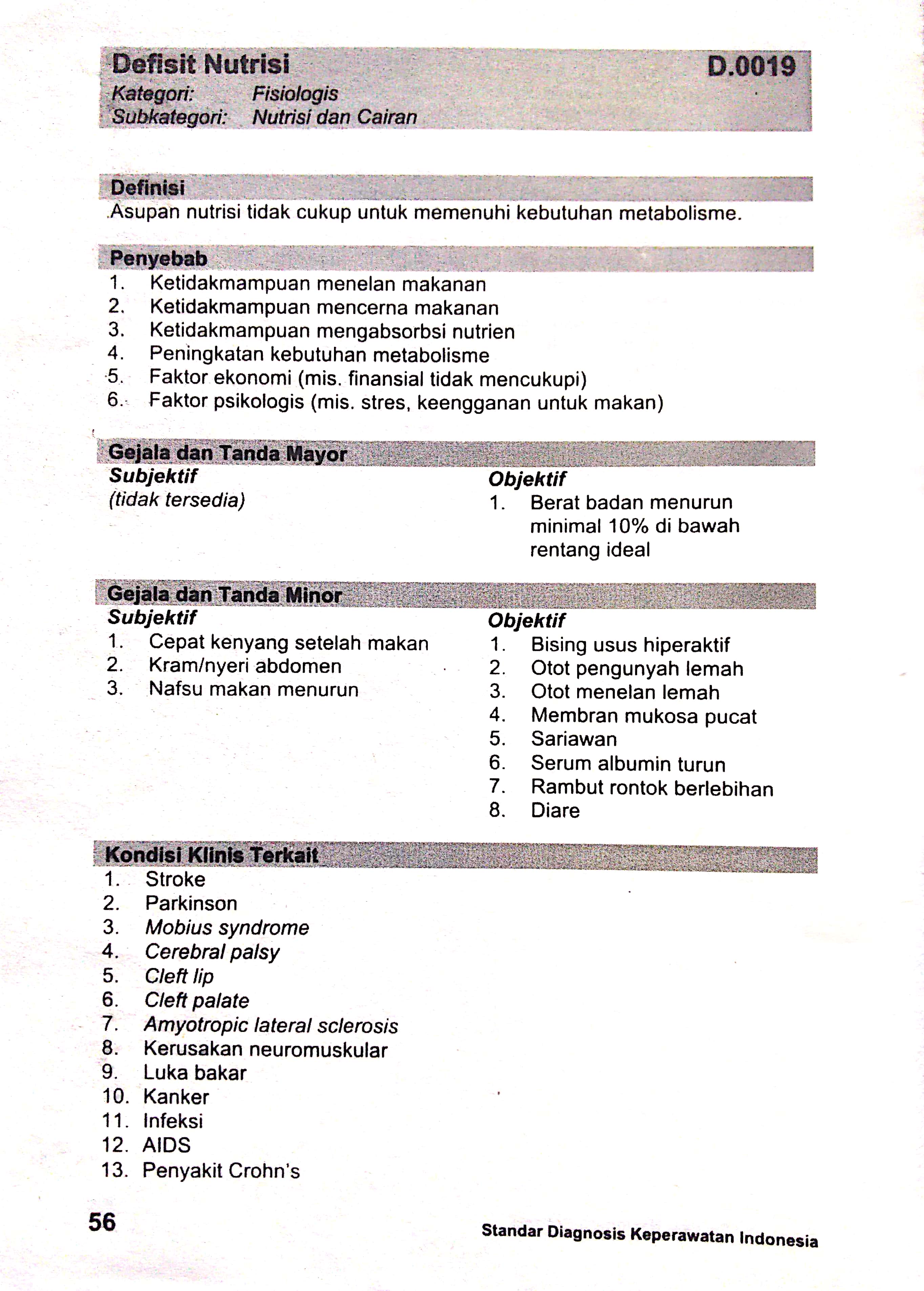 defisit nutrisi sdki standart diagnosis keperawatan indonesia