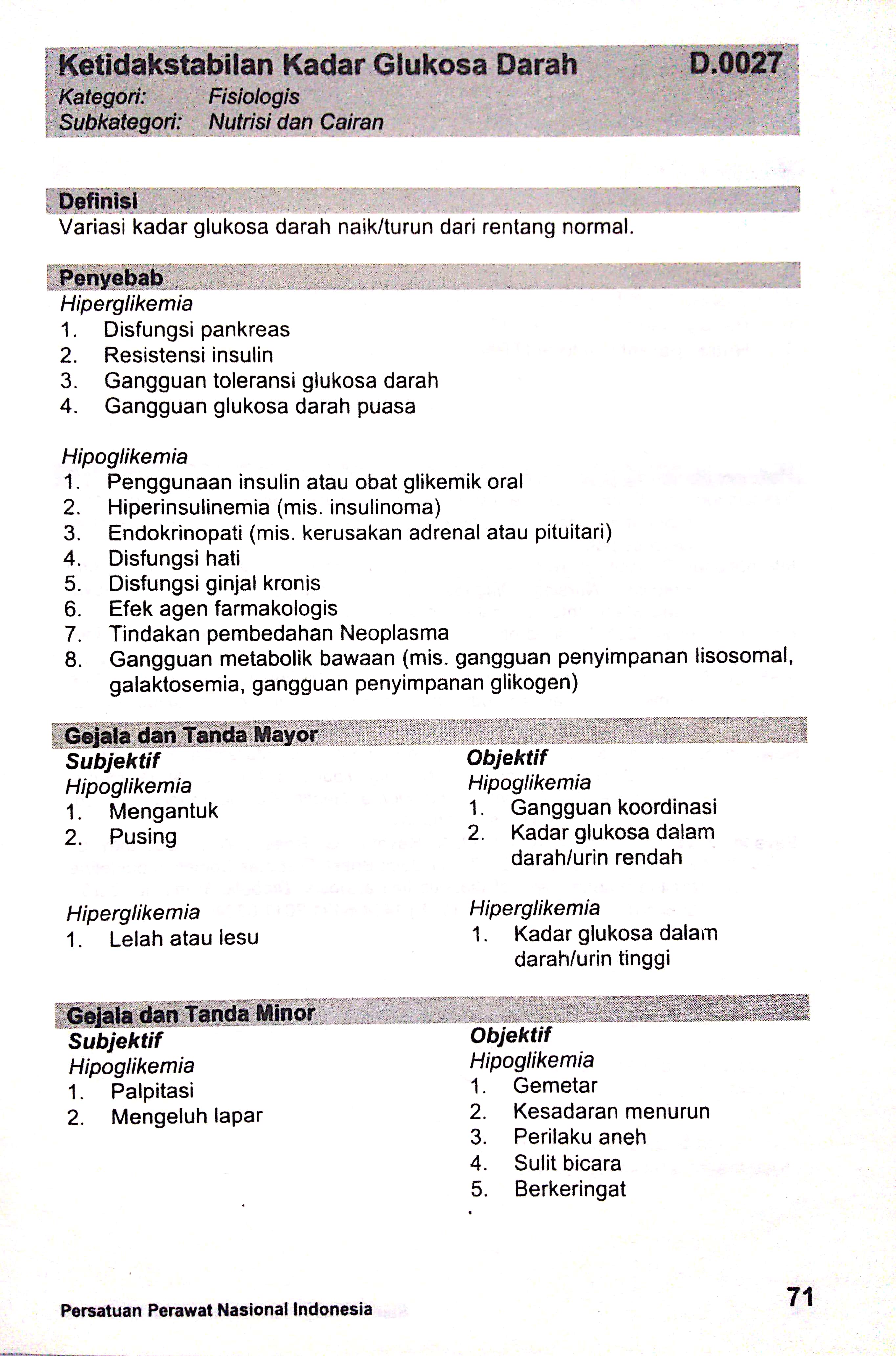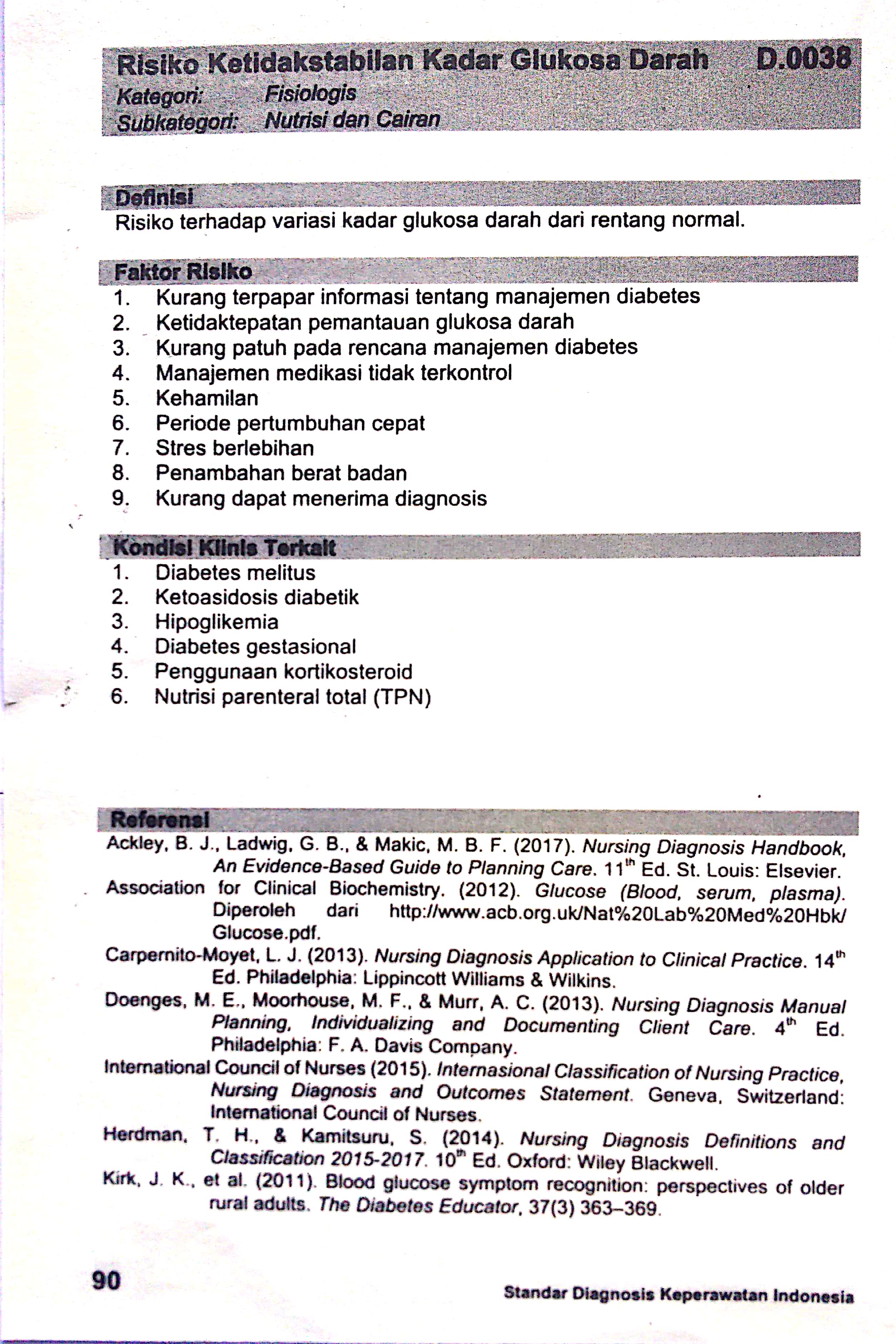 ketidakstabilan kadar glukosa darah sdki standart diagnosis