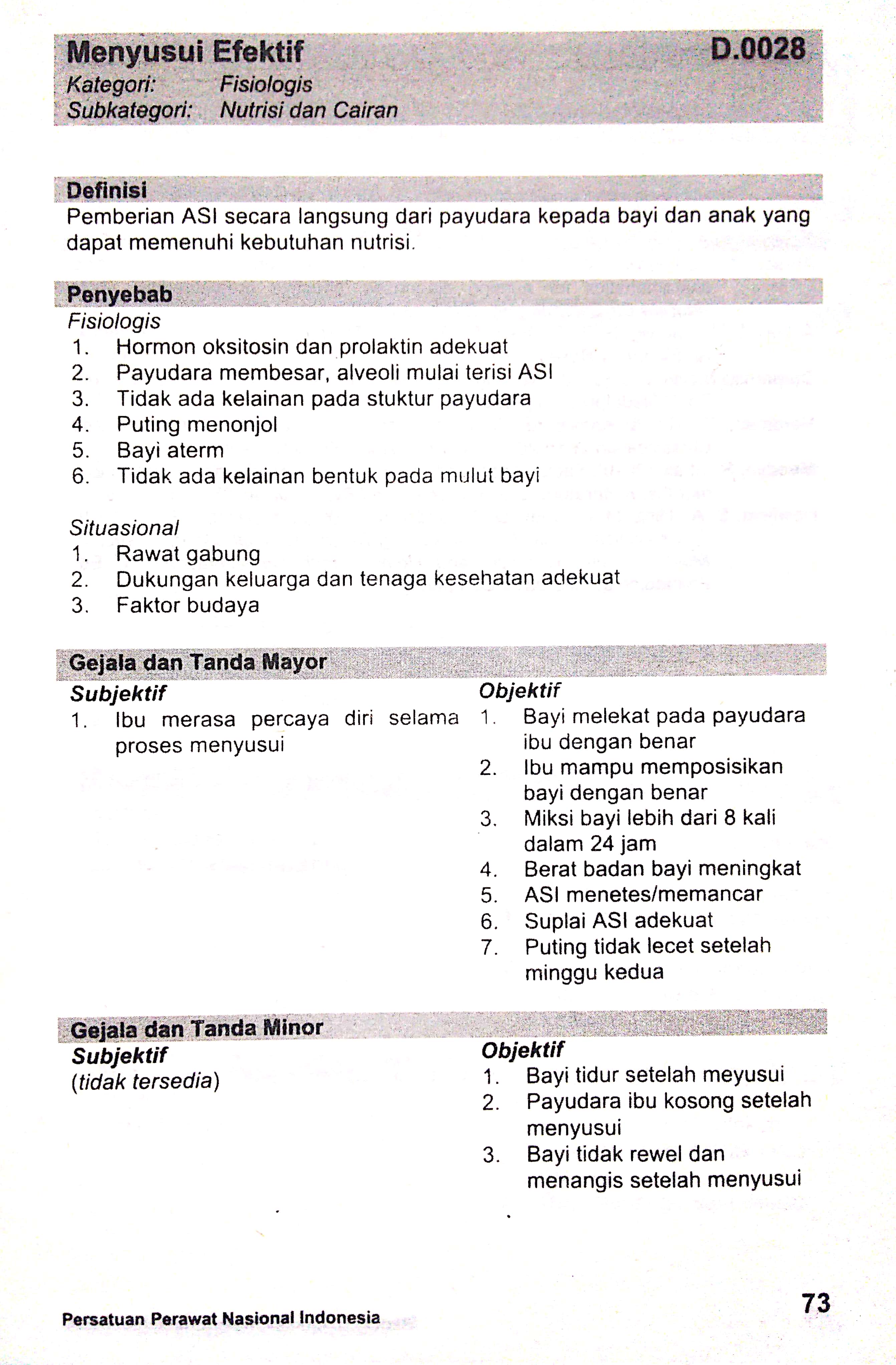 menyusui efektif sdki standart diagnosis keperawatan indonesia