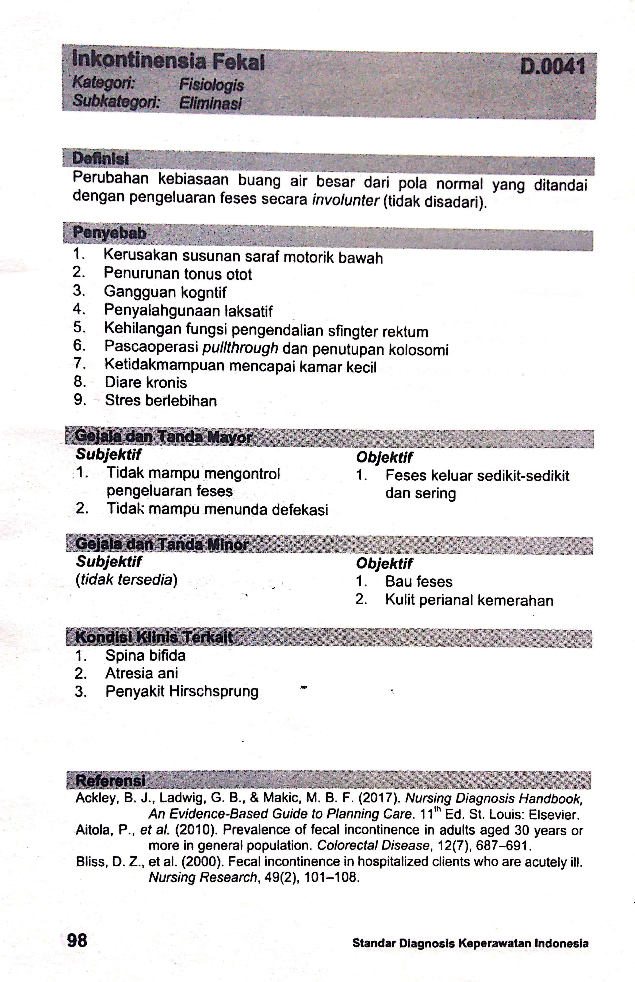 inkontinensia fekal sdki standart diagnosis keperawatan