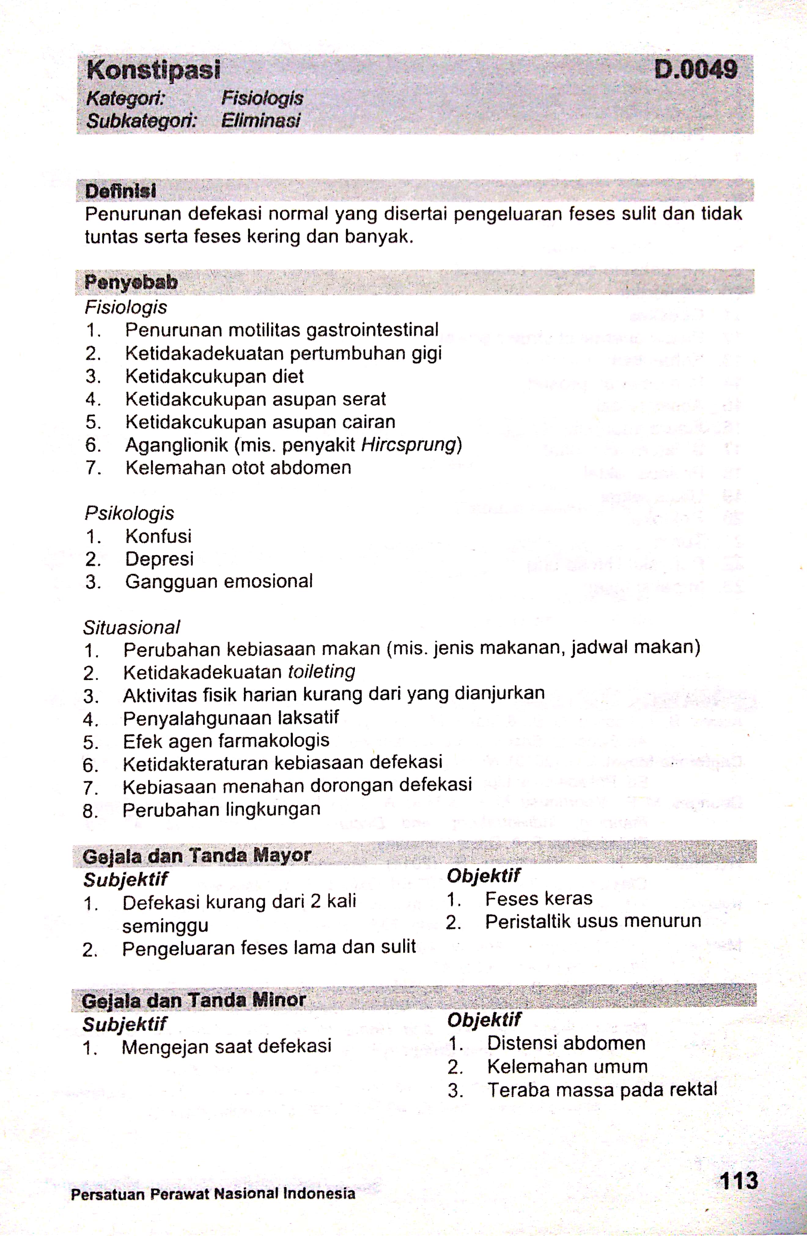 konstipasi sdki standart diagnosis keperawatan indonesia