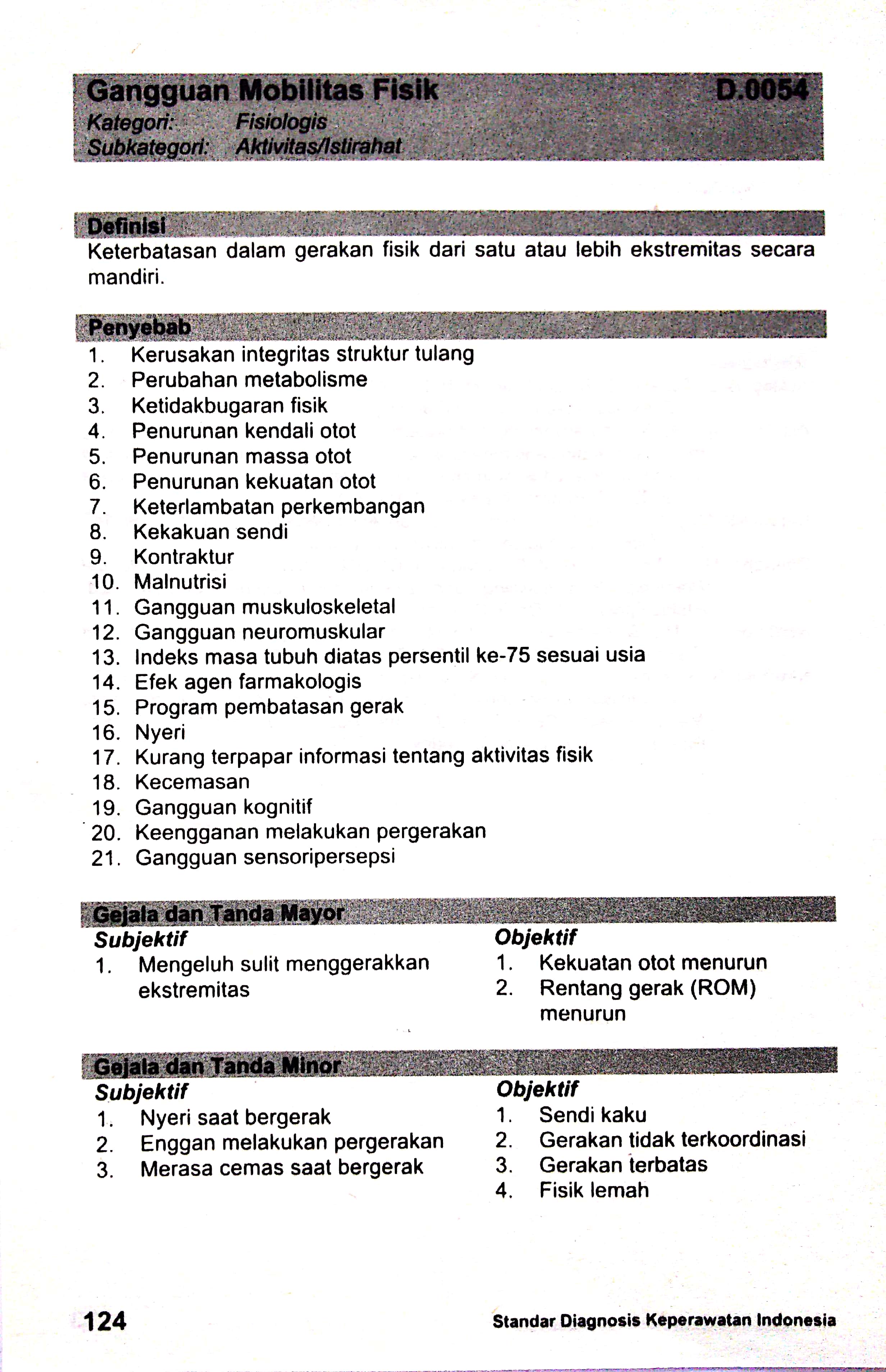 gangguan mobilitas fisik sdki standart diagnosis keperawatan