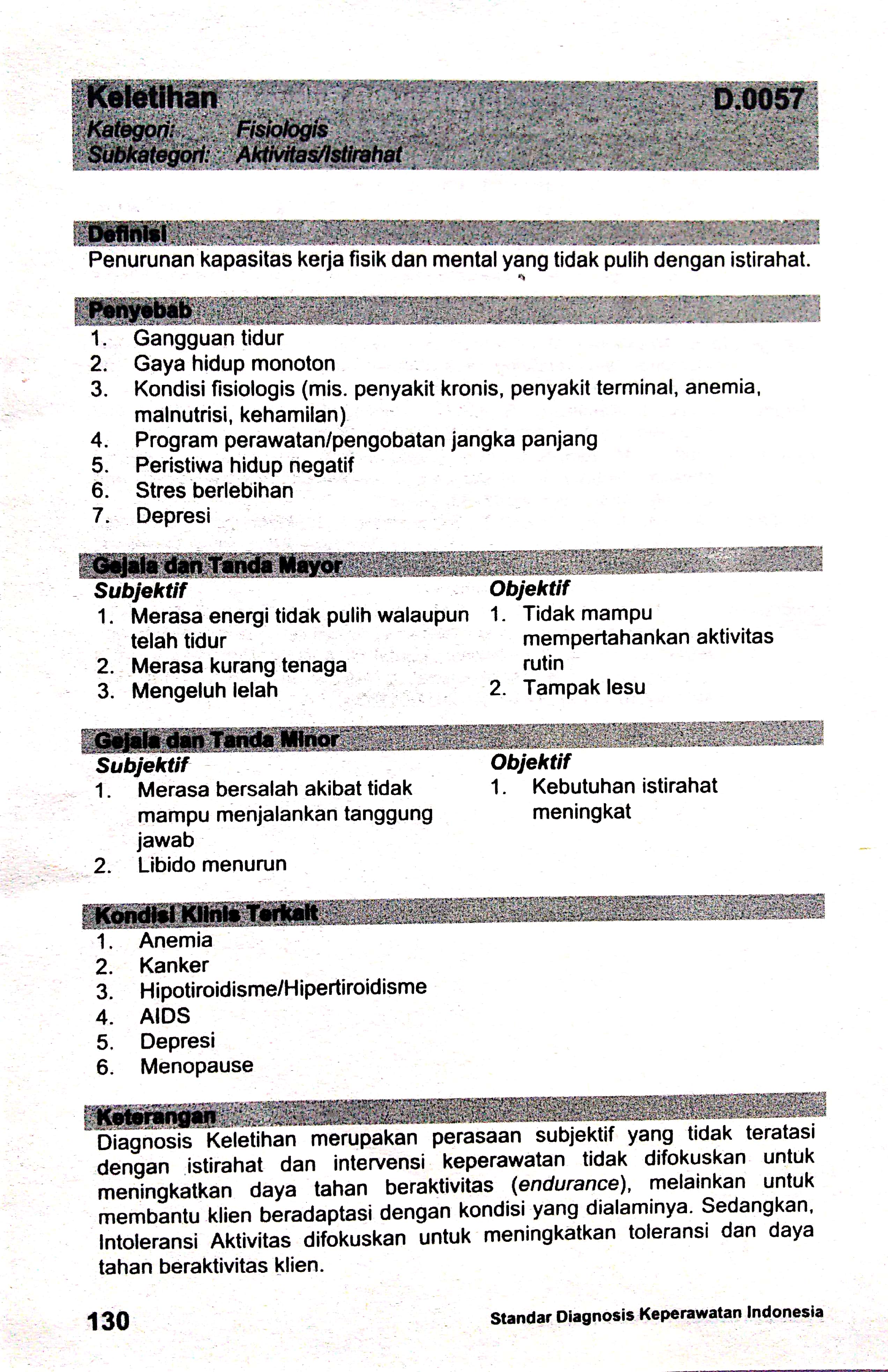 keletihan sdki standart diagnosis keperawatan indonesia