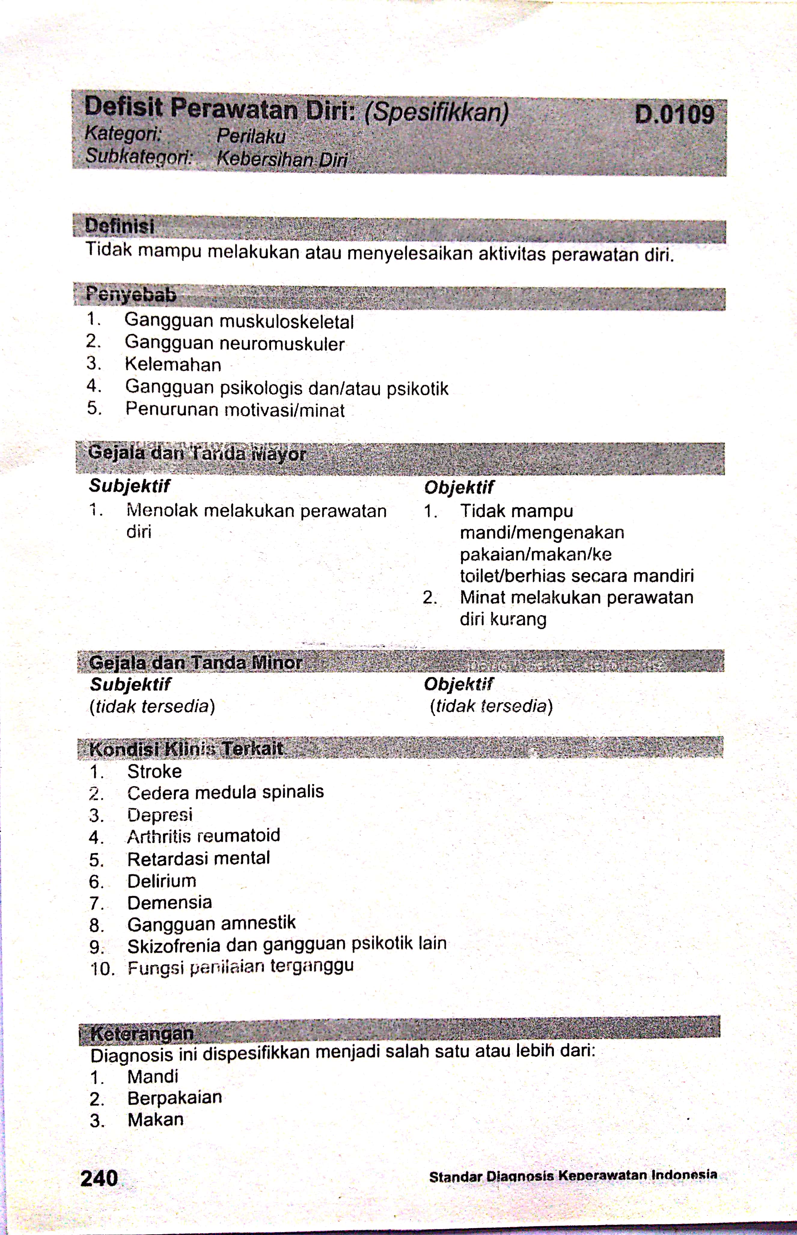 defisit perawatan diri sdki standart diagnosis keperawatan