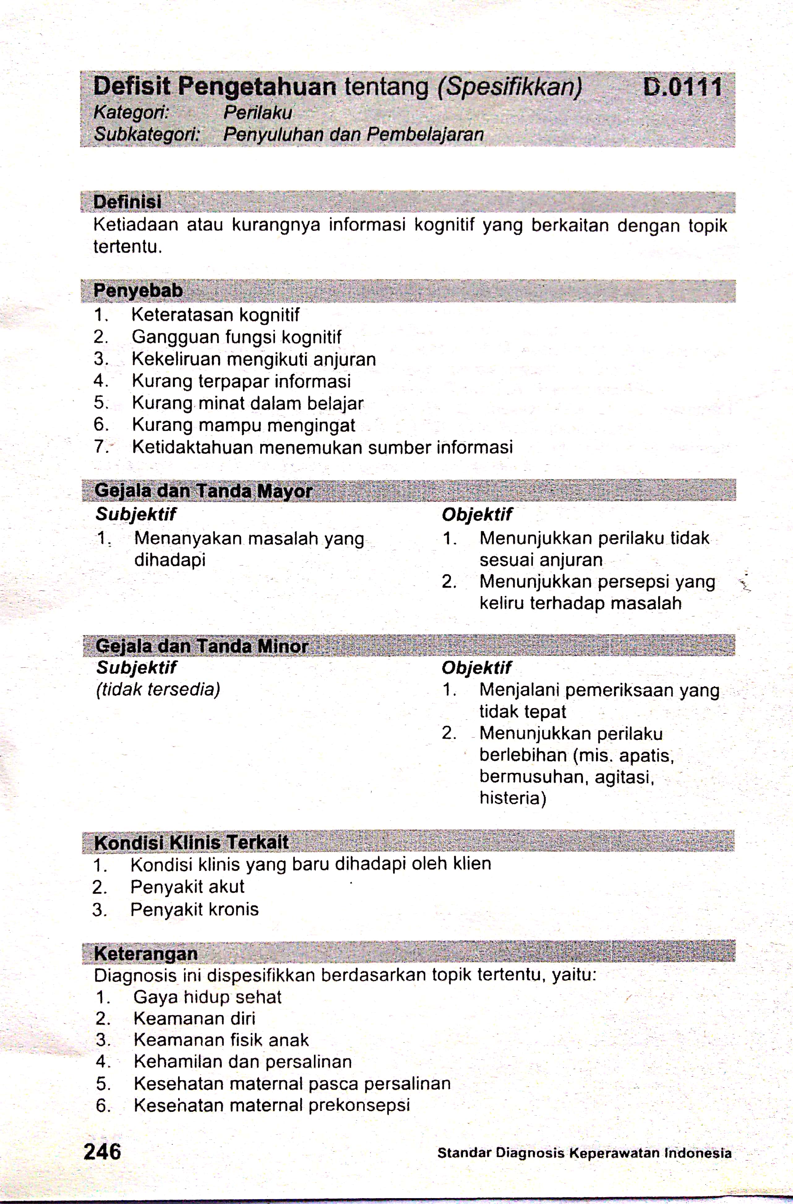defisit pengetahuan sdki standart diagnosis keperawatan