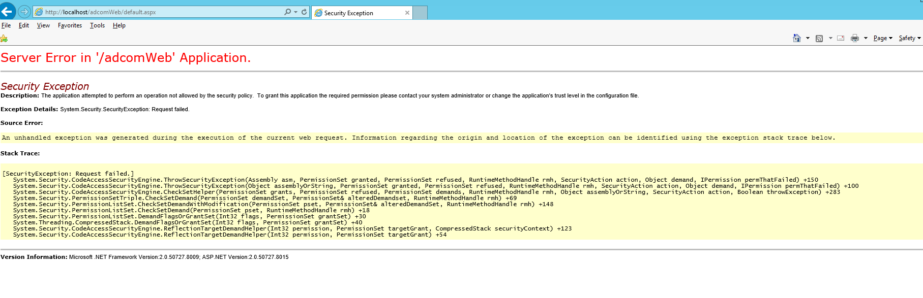 net security exception error troubleshooting center