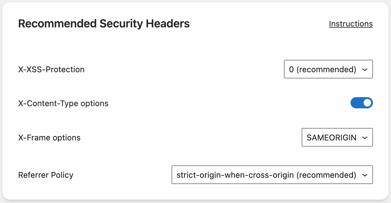 configuring recommended security headers simple security