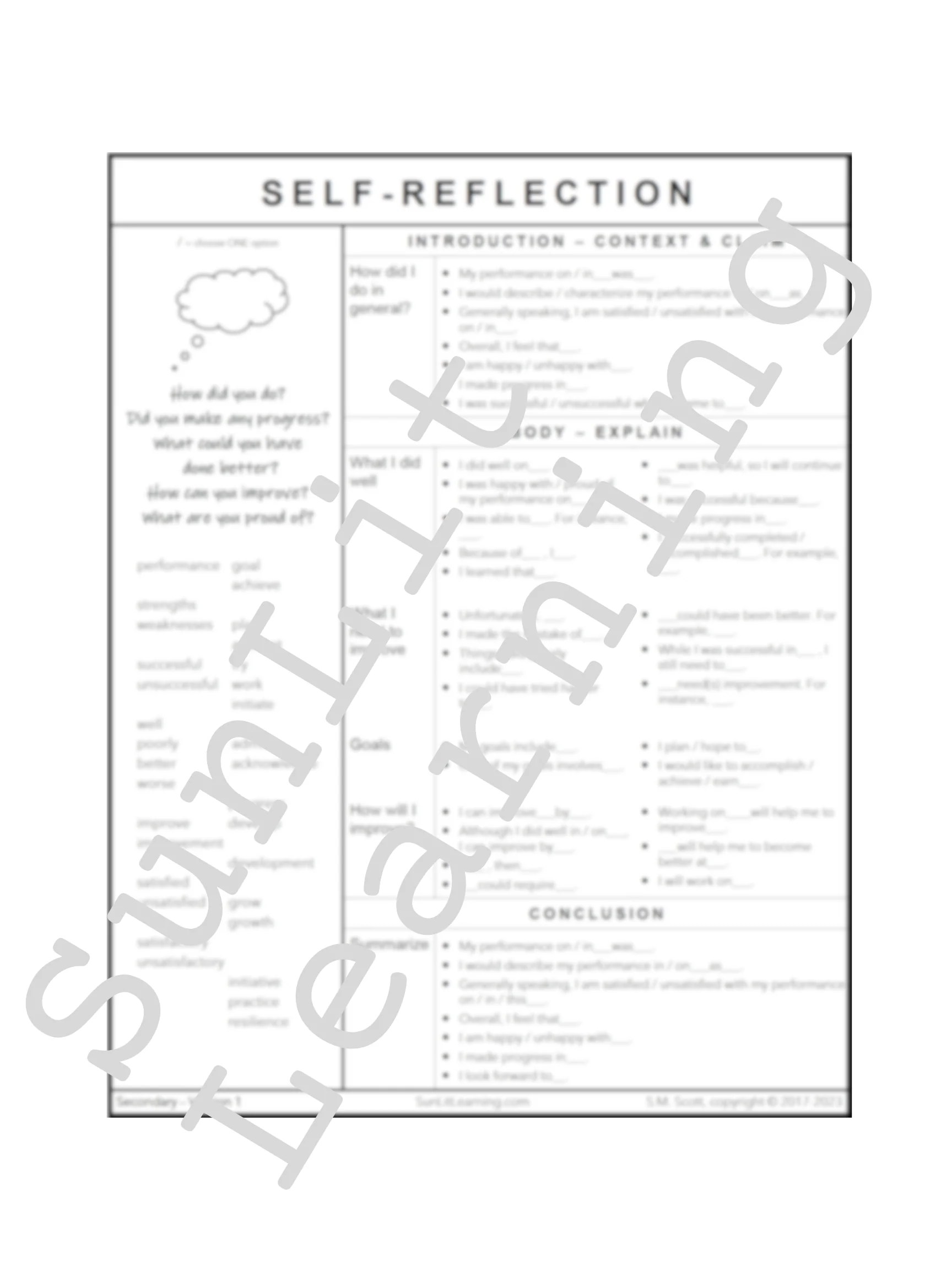 Berbagai Contoh Self Reflection Grid