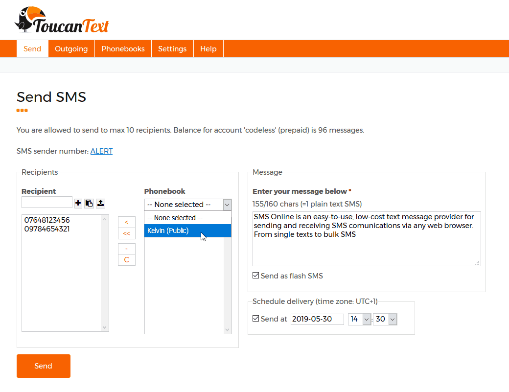 Kami mengirim paket Send Sms melalui berbagai ekspedisi, misalnya JNE, JNT, POS, dll. Kami juga menerima pembayaran via BCA/Mandiri/dll. Pengiriman biasanya tidak sampai seminggu sudah sampai dan kami sertakan pula nomor resi yang bisa digunakan untuk tracking barang secara online.