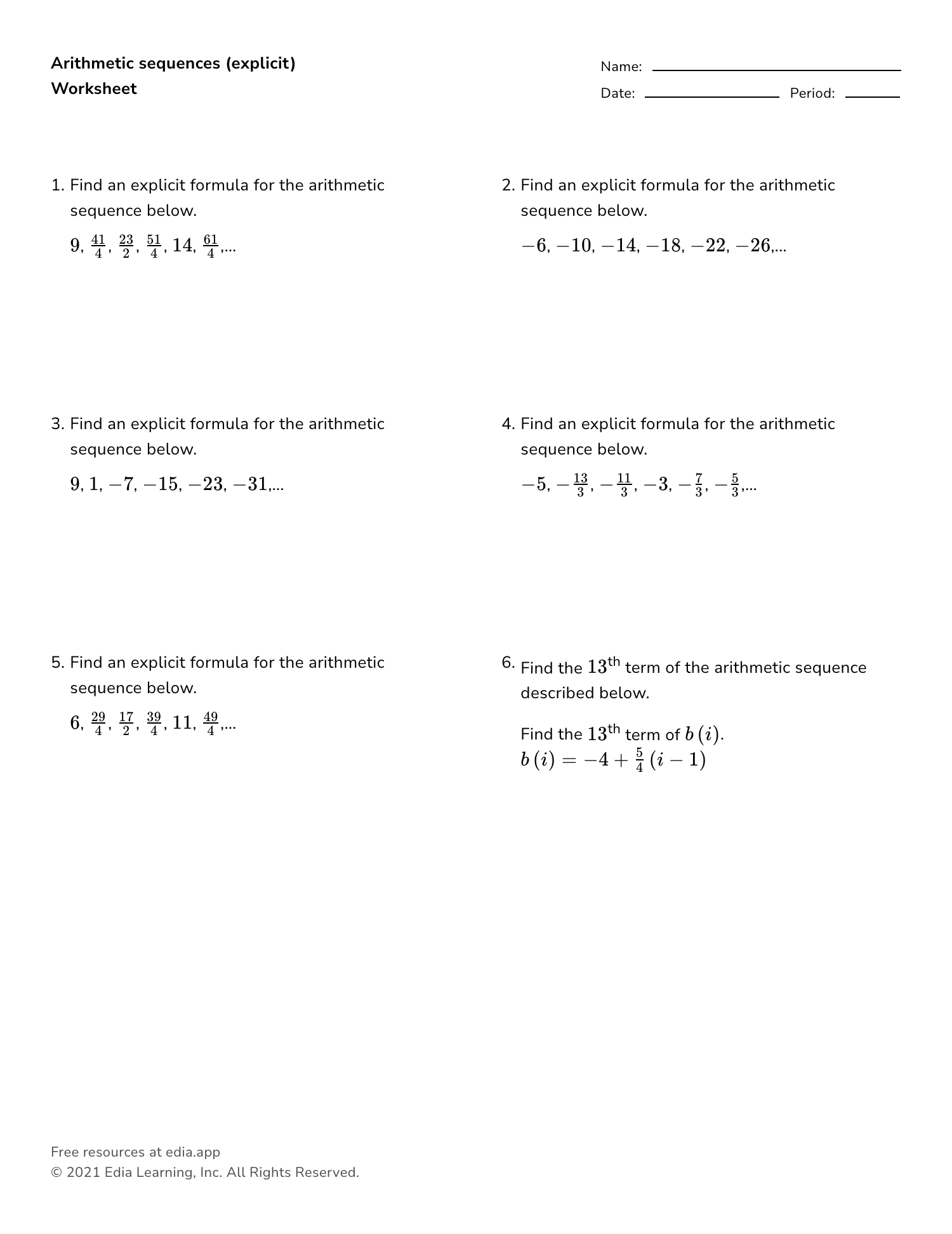arithmetic sequence worksheets worksheets library