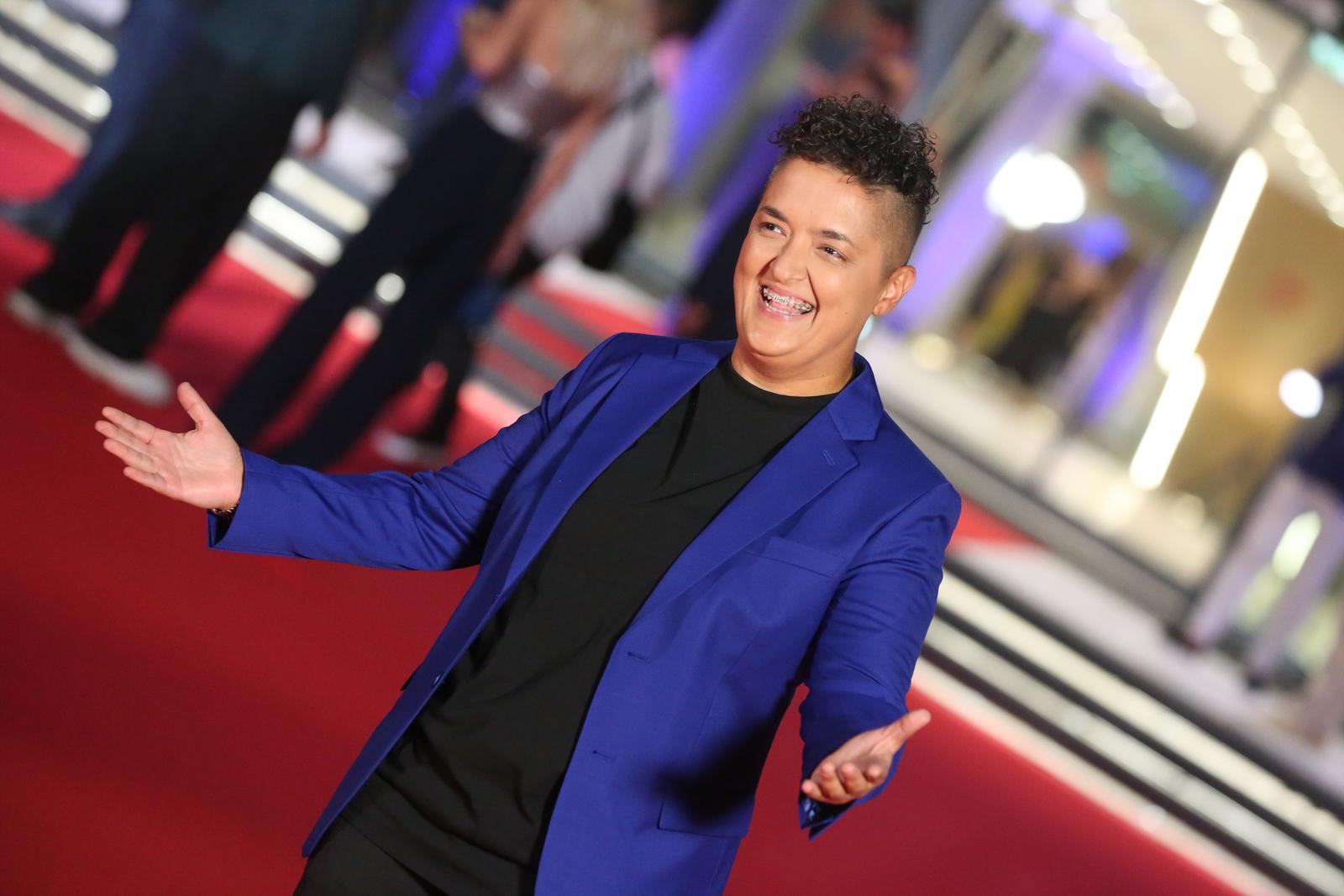 serbian singer marija serifovic gestures award celebrate