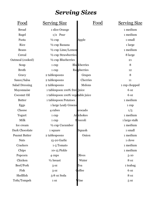 Berbagai Contoh Serving Size Chart