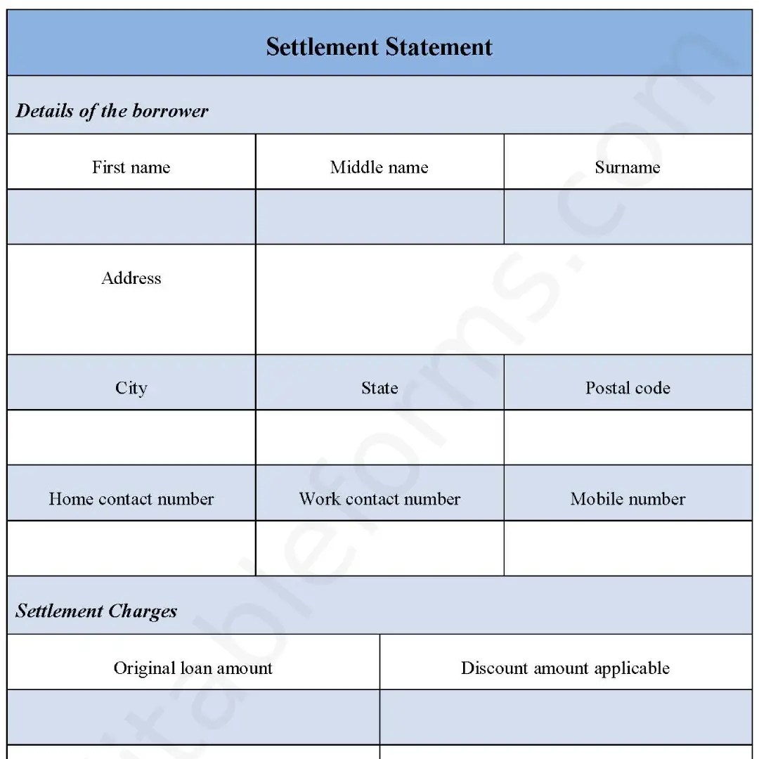 settlement statement fillable form fillable form