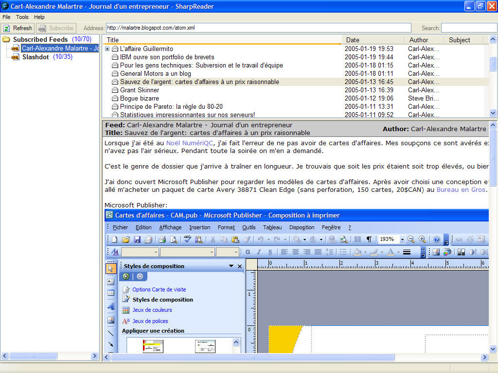 Tidak hanya Sharpreader, anda juga bisa melihat gambar lain seperti FeedDemon, Feedreader, Newsfire, and RSS Reader.