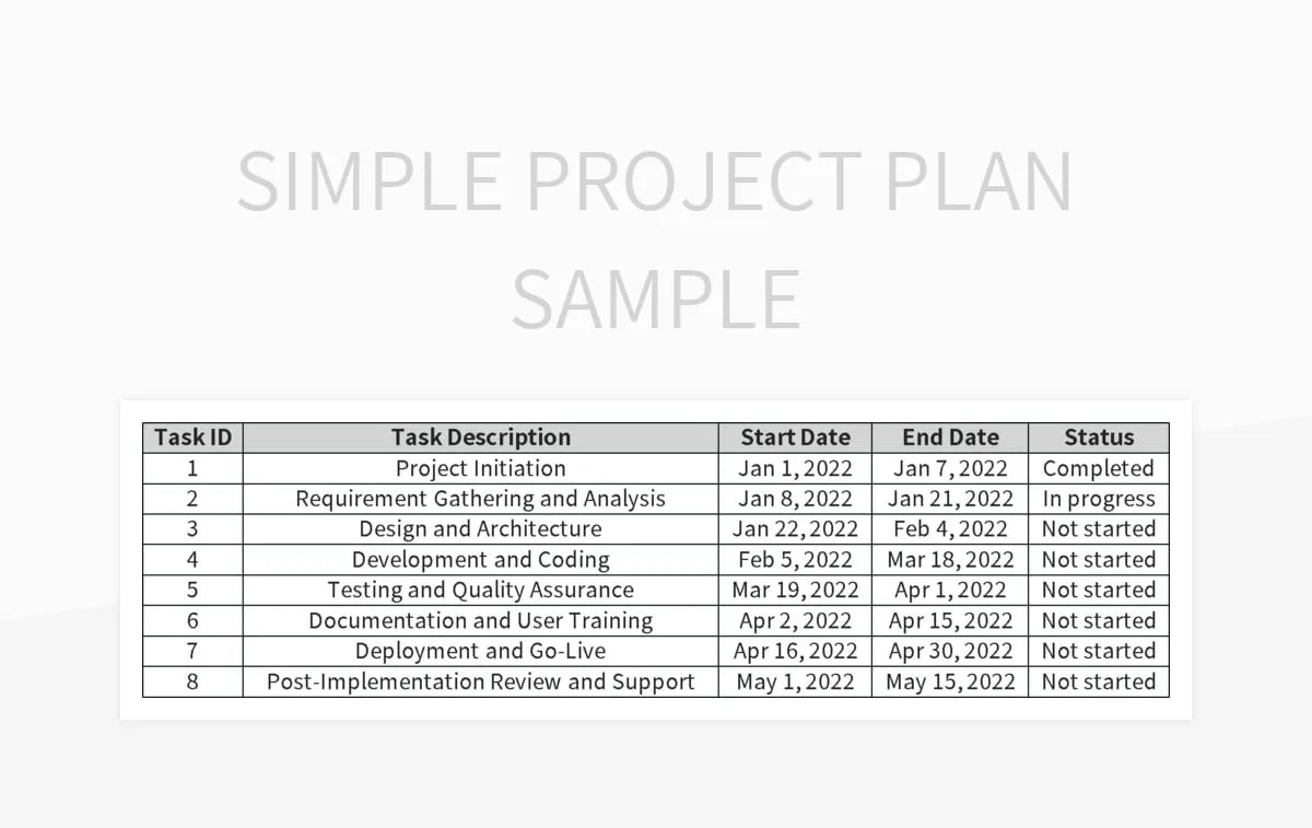 simple project plan sample excel template google sheets file