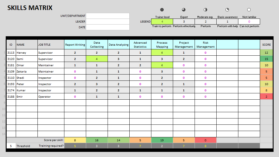 Berbagai Contoh Skills Matrix Examples