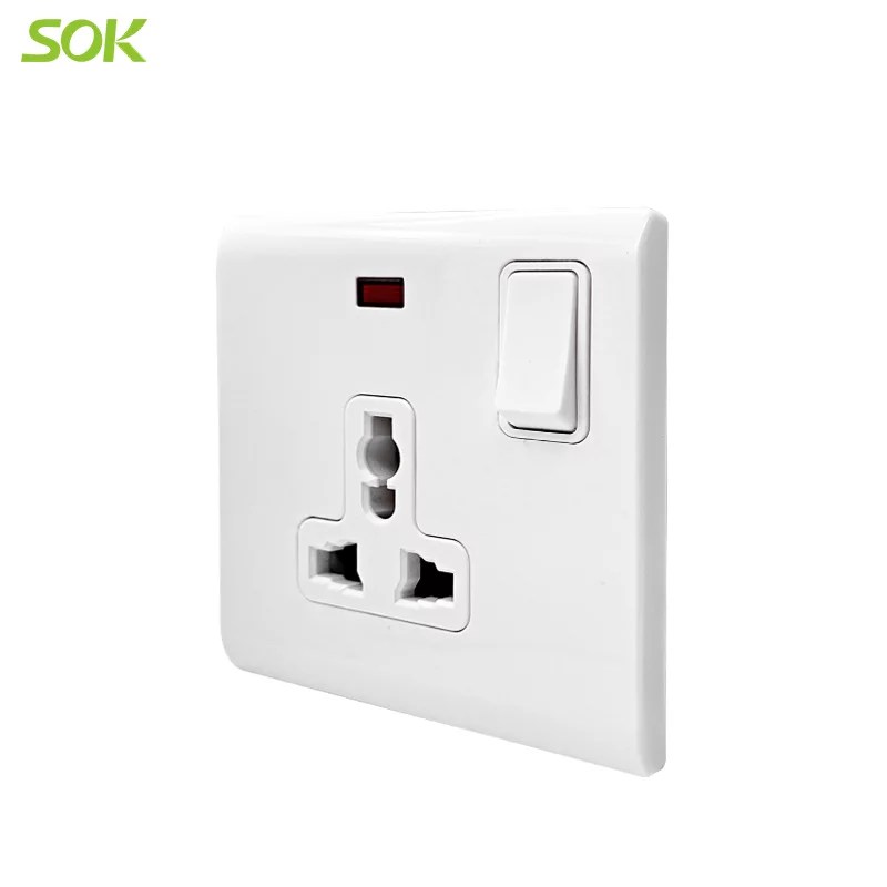 single pole switched universal socket outlet neon white