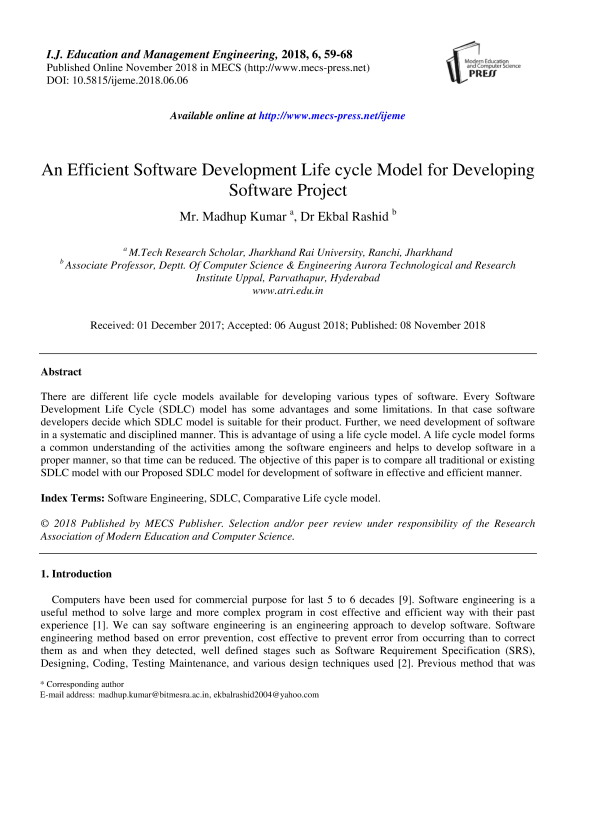 efficient software development life cycle model developing
