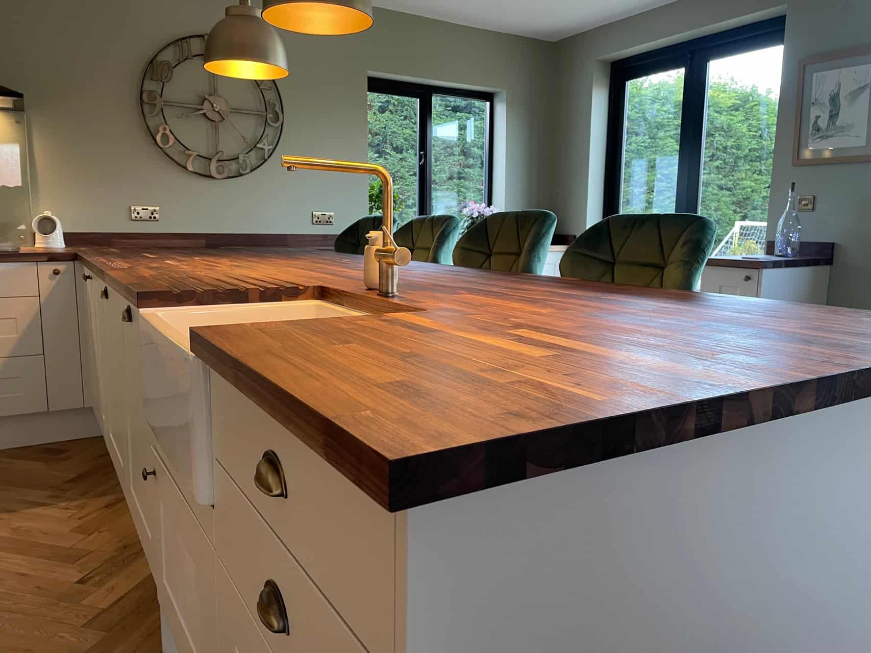 Tidak hanya Solid Wood Worktops, anda juga bisa melihat gambar lain seperti Stained Walnut, Whitewashed, Dark Oak, Joint Sealing, and Light Grey Kitchen.