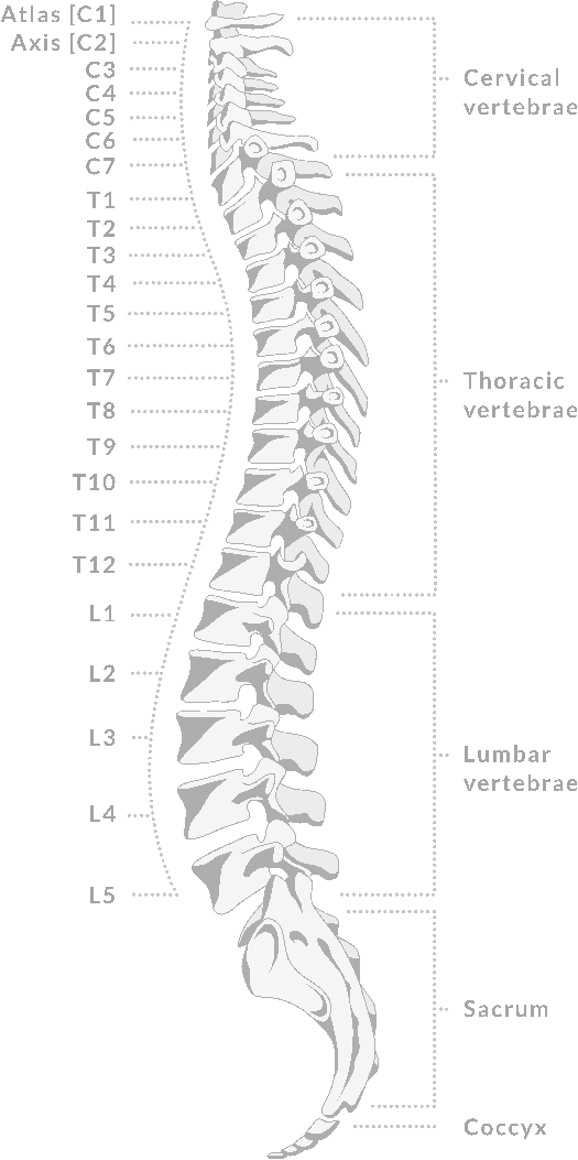 spine structure anatomy composition colored view spine divisions