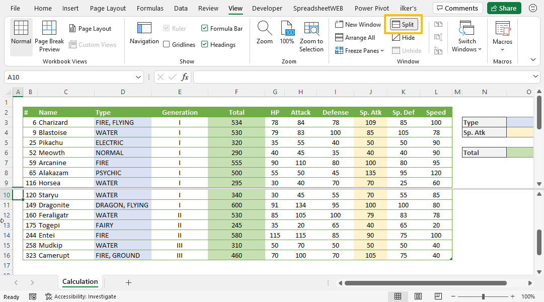 Berbagai Contoh Split Panes Excel