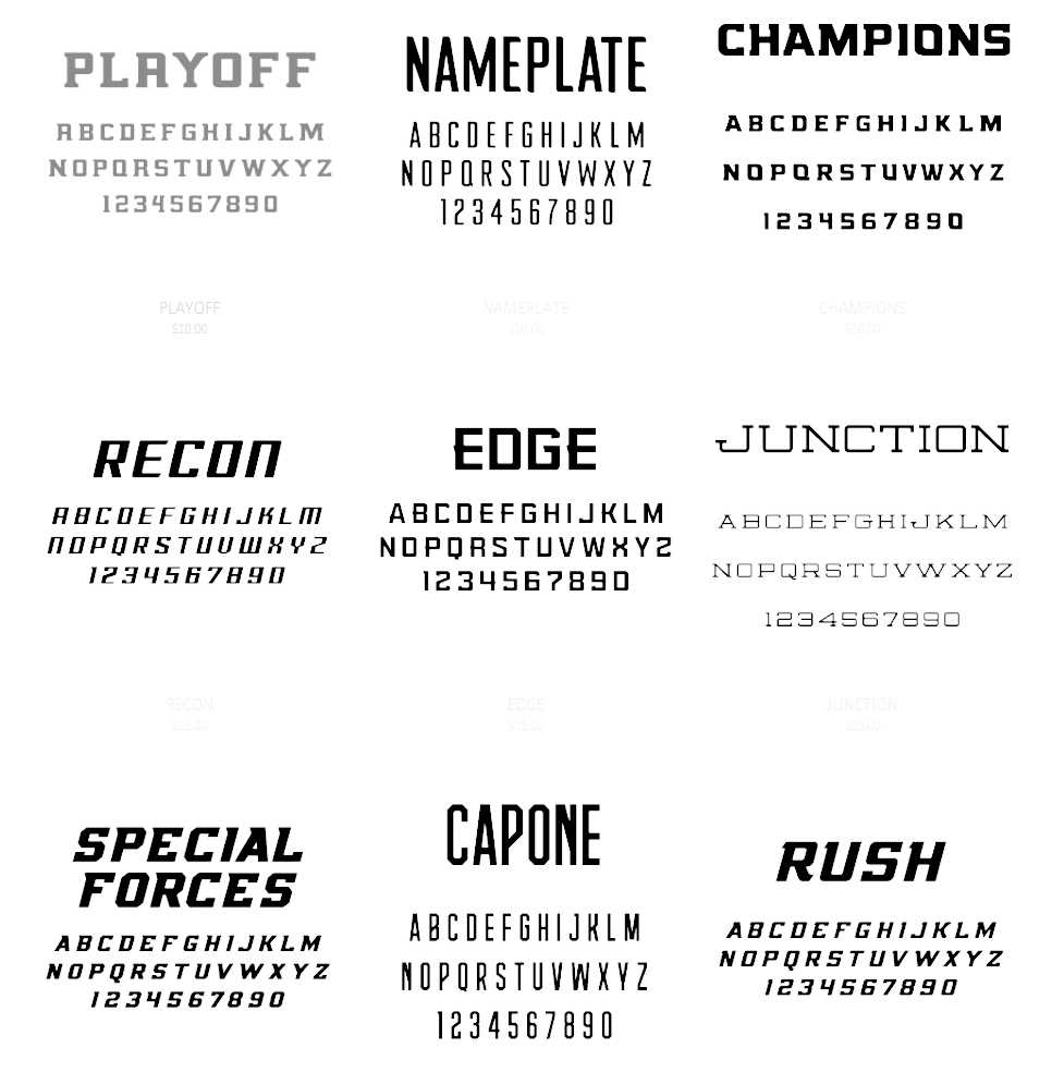 Berikut kami sertakan berbagai contoh gambar untuk Sports Fonts, silakan save gambar di bawah dengan klik tombol pesan, anda akan kami arahkan pemesanan via WA ke +6282245078486.