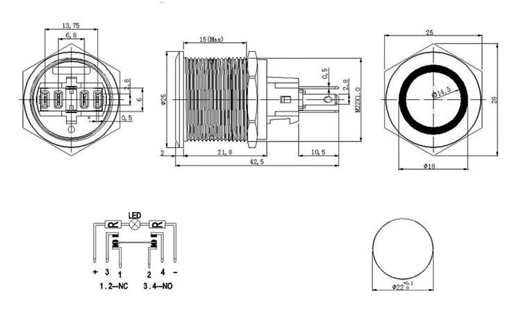 spst momentary push button technical specifications datasheet