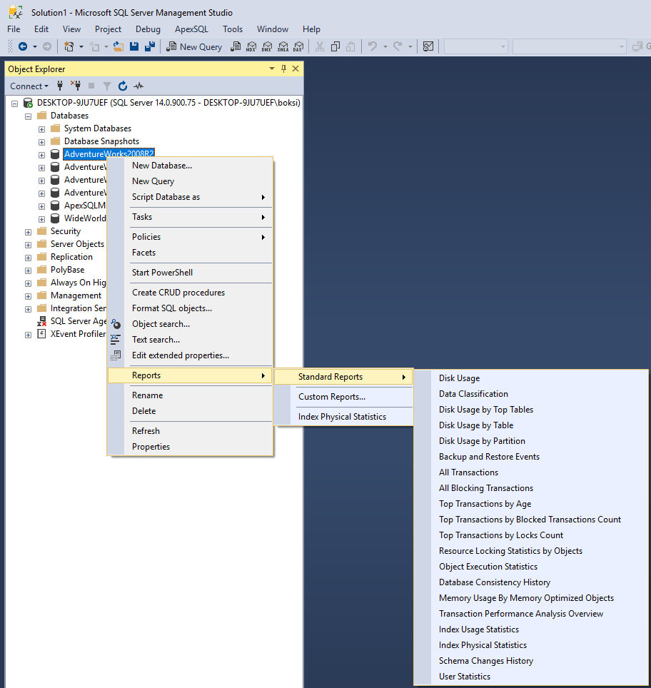 sql server management studio performance dashboard reports overview