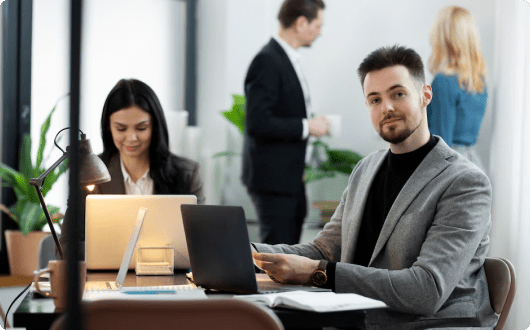 professional office setting diverse staff working